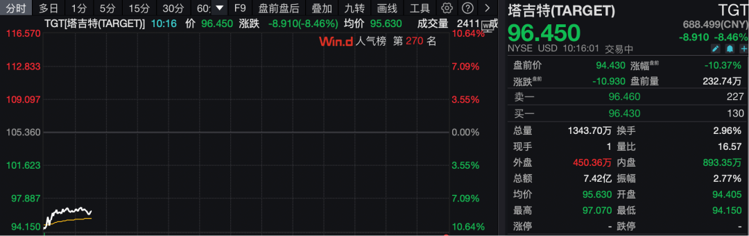 另外,美国零售巨头塔吉特发布财报后一度跌超10%。