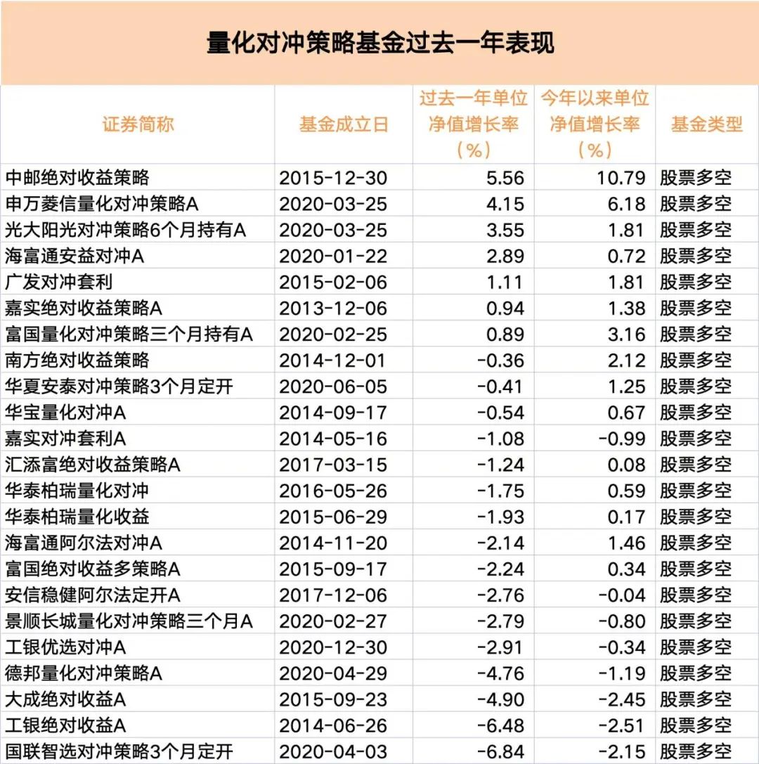 据统计,截至8月22日,全市场可统计的23只量化对冲策略主题基金(以股票多空类为主),过去一年平均收益为-1.04%;其中16只基金过去一年复权单位净值增长率告负,占比接近七成。