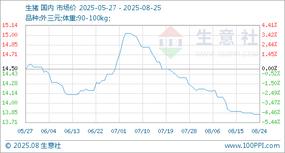 8月25日生意社生猪基准价为13.83元/公斤