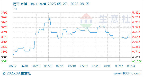 8月25日,生意社沥青基准价为3690.00元/吨,与本月初(3726.67元/吨)相比,下降了0.98%。