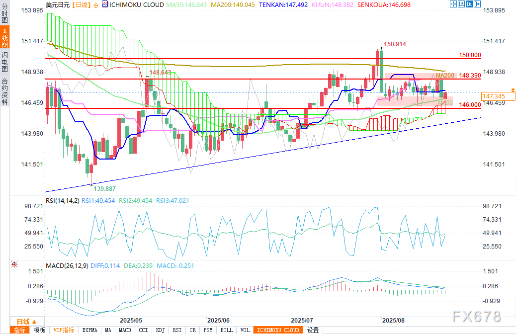 汇通财经APP讯——周一(8月25日),美元/日元整体呈现先涨后震荡回落再反弹的走势,早盘有明显上升趋势,后续进入震荡阶段 。短期趋势在反弹,需观察能否突破前期高点延续升势。