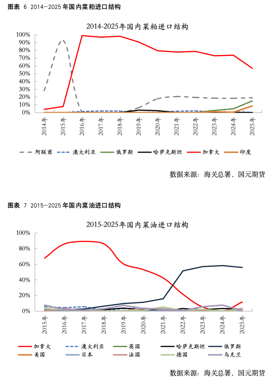 三、近十年国内菜籽、菜粕、菜油进口结构变化
