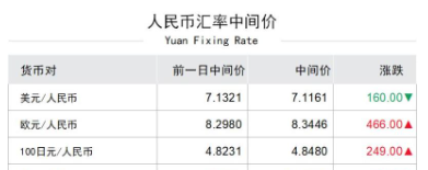 8月25日,中国人民银行授权中国外汇交易中心公布,银行间外汇市场人民币汇率中间价为1美元对人民币7.1161元,相较前一交易日中间价7.1321元,调升160个基点,创2024年11月以来新高。