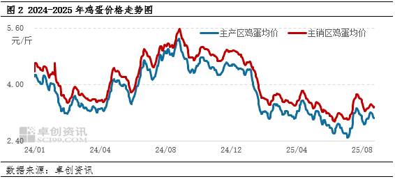 9月中上旬为中秋备货集中期,加之中秋前养殖单位多有淘鸡计划,在产蛋鸡存栏量或有下降预期,市场供需关系或进一步收紧,鸡蛋价格或上涨空间有限;但中旬以后,随着假期临近,各环节备货逐渐结束,市场需求开始减弱,市场供需将由紧转松,预计月末库存或有所提升,预计月内均价仅在3.25元/斤左右。