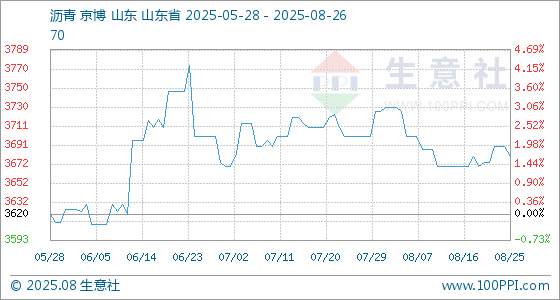 8月26日生意社沥青基准价为3680.00元/吨