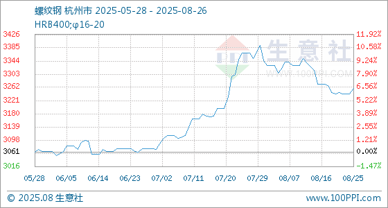 8月26日生意社螺纹钢基准价为3260.00元/吨