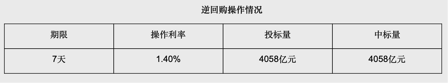 央行开展4058亿元7天期逆回购操作,净回笼1745亿元