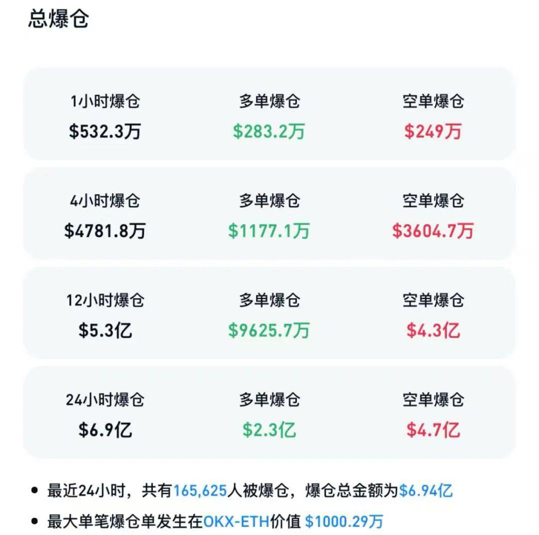 根据市场公开信息,Coinglass数据显示,过去24小时加密货币市场共有超16万人被爆仓,爆仓总金额为6.94亿美元。也有市场人士表示,比特币资产如今正逐渐展现出成熟的迹象,其波动性也在降低,追逐价格波动的投资者如今转而投向了比特币的“竞争对手”以太坊。