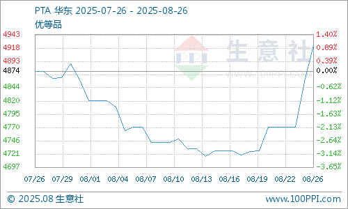 成本端利好支撑增强,原油市场截止8月25日美国WTI原油期货10月合约结算价报64.80美元/桶,布伦特原油期货10月合约结算价报68.80美元/桶。PTA华东地区装置停车检修,供应缩量平衡表去库扩大,现货价格重心走强,截止8月26日华东地区市场均价在4922元/吨,较8月18日上涨4.28%。