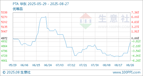 8月27日生意社PTA基准价为4922.50元/吨