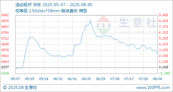 8月5日生意社涤纶短纤基准价为6532.92元/吨