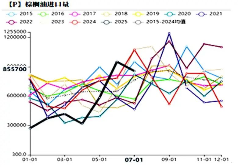 2024年印尼降水改善,因此,2025年印尼棕榈油产量仍在恢复。况且印尼公布的6月数据扭转了此前减产的预期,1月至6月增产接近190万吨。因此,即使棕榈油供应端再度出现利多,对于盘面的上行驱动可能不会像之前那么大了。否则9月之后需求下降更多,持续累库下,棕榈油甚至还有下行压力。