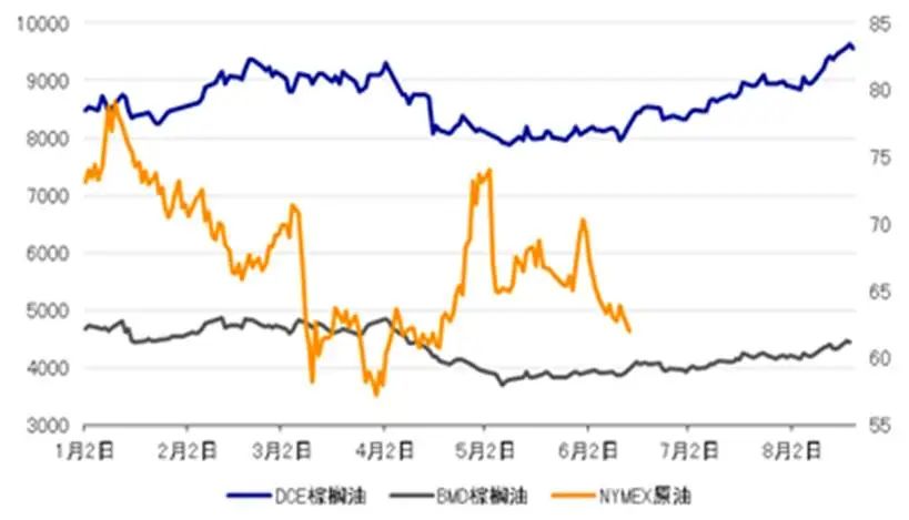 根据印尼能矿部数据,1月至7月印尼实现生物柴油分销79.6亿升。如果持续下去,全年可能完成160亿升,略高于此前的目标。除了印尼偏低的棕榈油库存支撑价格,生物柴油内需旺盛也是利多因素。但受产能约束,B50的实施还需要时间,况且8月份开始原油价格走弱,印尼生物补贴费用增多,目前生物柴油对棕榈油的需求增量也不会超预期很多。
