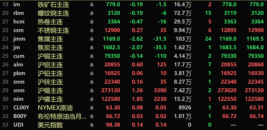黑色系普跌,铁矿跌0.19%,螺纹跌0.19%,热卷跌0.47%。不锈钢涨0.27%。双焦方面:焦煤主力合约跌2.62%,焦炭主力合约跌2.07%。