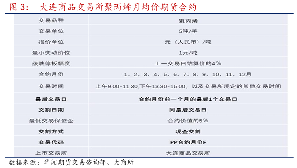 聚烯烃月均价期货合约的交易单位、交易时间、手续费、保证金、涨跌停板等方面与实物交割期货合约保持一致。