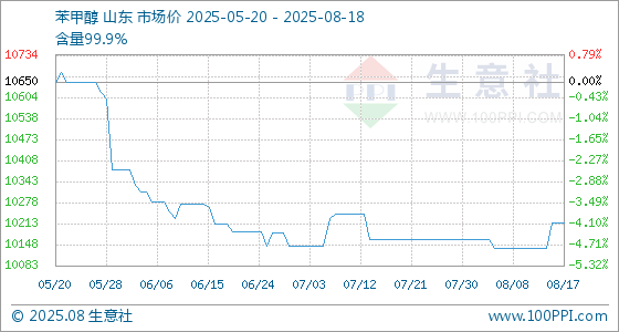 8月18日生意社苯甲醇基准价为10214.29元/吨