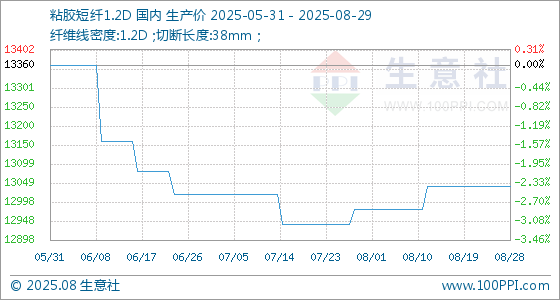 8月29日生意社粘胶短纤1.2D基准价为13040.00元/吨