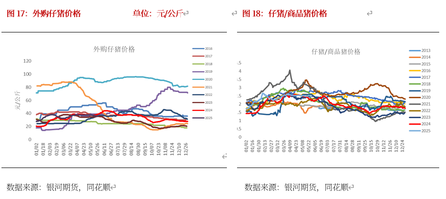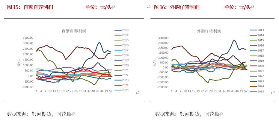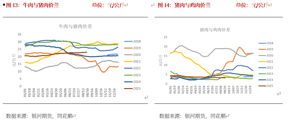 整体来看,月内散户出栏节奏呈现前期出栏节奏加快后续开始逐步挺价的表现。月初以来,规模企业出栏节奏相对一般,现货价格以稳为主,但散户跟涨不积极,多以顺势出栏为主,参考三方机构公布的规模企业与养殖户价差来看,月度上旬以来,规模企业与散户价差从0.02元/公斤一路上涨至0.1元/公斤以上,一定程度反应了养殖户的出栏压力。随着现货价格连续回落,散户对于低价抵触表现也有所增加,加之前期生猪存栏压力有所下降,市场出栏压力较此前有所减少,可以看到在此期间规模企业与散户价差从前期0.1元/公斤以上开始逐步回落至价格比较接近水平。整体来看,月内散户出栏积极性较前期有所增加,市场也开始逐步进入散户主动出栏阶段,当前散户价格开始逐步持稳主要因价格落至阶段性低位,但如果后续压力继续体现,预计可能继续有下行压力。