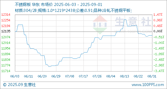 9月1日生意社不锈钢板基准价为12095.71元/吨
