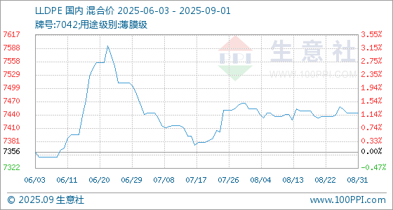 9月1日生意社LLDPE基准价为7445.00元/吨