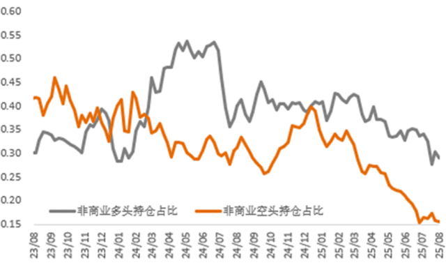 持仓方面,从CFTC持仓来看,上周非商业空头占比重新回落,非商业多头占比有所抬升,这也与短期铜价的波动较为吻合。可能在一段时间内多空仍将维持现有格局,但由于两者目前总持仓量均较低,因此后续一旦行情爆发,预计将较为猛烈。
