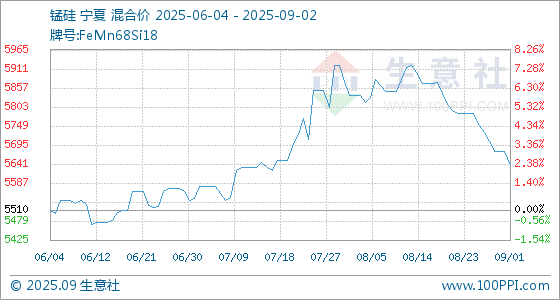 9月2日,生意社锰硅基准价为5638.00元/吨,与本月初(5676.00元/吨)相比,下降了0.67%。