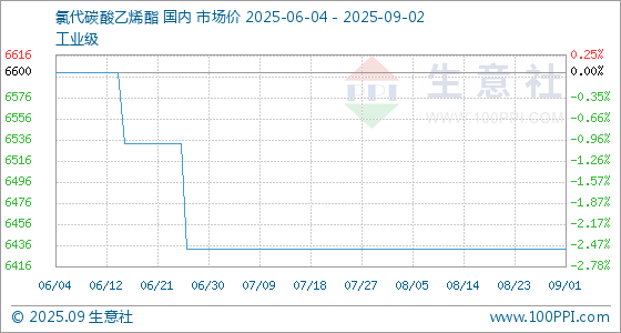 9月2日,生意社氯代碳酸乙烯酯基准价为6433.33元/吨,与本月初持平。