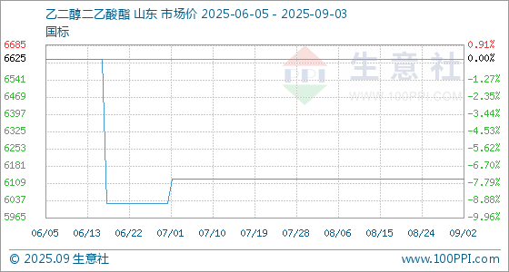 9月3日,生意社乙二醇二乙酸酯基准价为6125.00元/吨,与本月初持平。