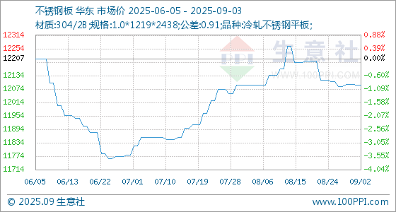 9月3日生意社不锈钢板基准价为12092.86元/吨