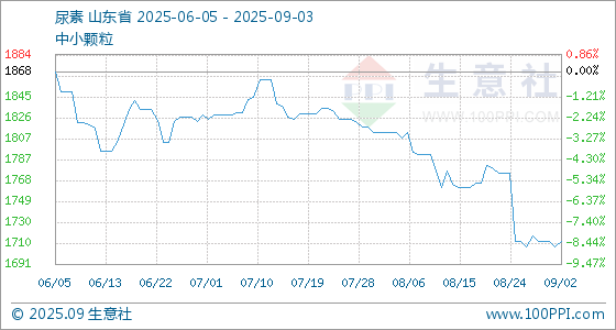 9月3日,生意社尿素基准价为1712.50元/吨,与本月初持平。
