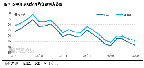 卓创资讯预测,9月WTI月均价为62美元/桶,环比下跌2.02美元/桶。一方面,俄乌问题持续谈判,虽然过程相对曲折,将造成油价底部支撑明显,但随着后续谈判举行,停火大概率实行,地缘溢价回吐;另一方面,沙特继续增产,美国石油需求淡季来临,进入淡季后市场担忧累库速度加快,同样将施压油价。原油月均价继续下跌,从成本端利空沥青价格。