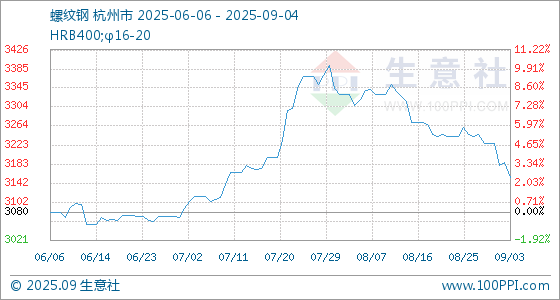 9月4日生意社螺纹钢基准价为3154.50元/吨
