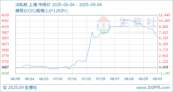9月4日生意社冷轧板基准价为3930.00元/吨