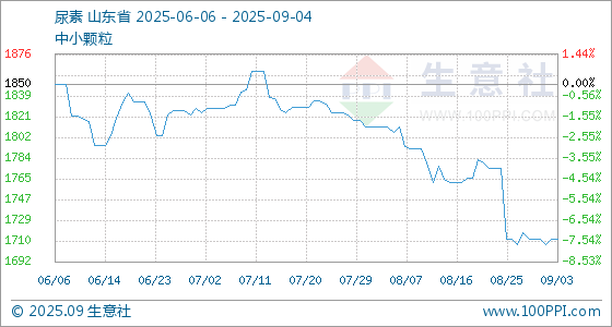 9月4日,生意社尿素基准价为1712.50元/吨,与本月初持平。
