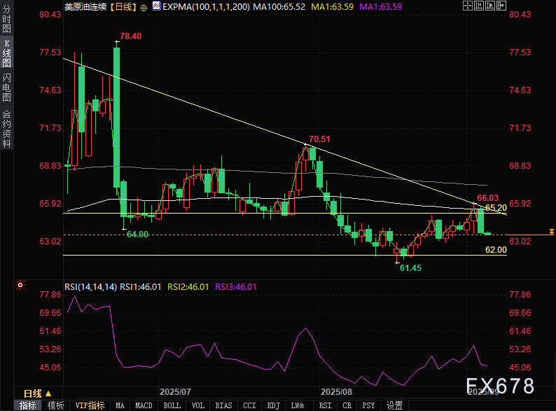 下方支撑:63.00美元(整数关口及近期震荡区间下沿)提供初步支撑,其次是62.50美元附近(8月21日低点)支撑位。若跌破,可能下探62.00美元心理关口,甚至61.50美元(8月低点附近)。