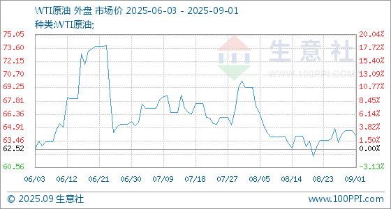9月1日生意社WTI原油基准价为64.60美元/桶