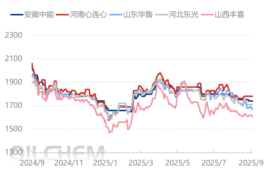 对于国内尿素市场而言,供需失衡格局首要源头还是来自于新增产能的释放,近几年间,各地产能陆续上马,供应能力显著增强,比如25年上半年间,多数时候日产维持20万吨以上。从区域分布看,新增产能集中于煤制工艺,进一步强化了煤头尿素的主导地位。当前企业库存处于近五年高位,截至9月初,全国尿素企业库存总量仍超100万吨,较去年同期增长超300%。高库存不仅压制了价格上行空间,也加剧了市场对供应过剩的担忧。尽管9月后秋季备肥可能带动部分库存转移,但若出口政策未显著放松,累库风险仍将持续。
