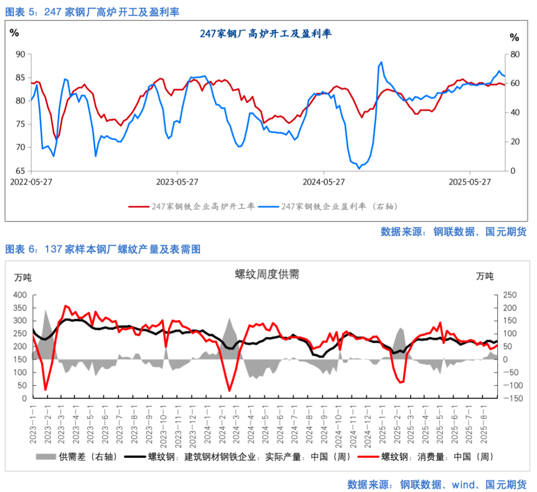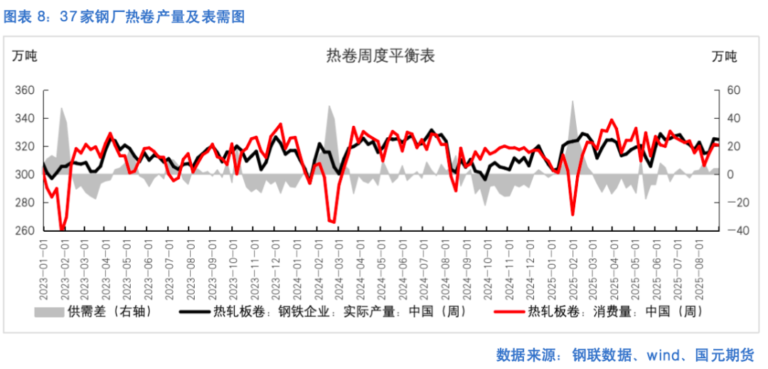 供应方面:唐山钢厂将在月底陆续对高炉按要求进行停产检修,预计新增检修高炉16座,日均影响铁水产量约11.66万吨,产能利用率降至78.13%,较去年同期下降6.84%。9月3日后,钢厂利润仍存,复产节奏预计偏快。
