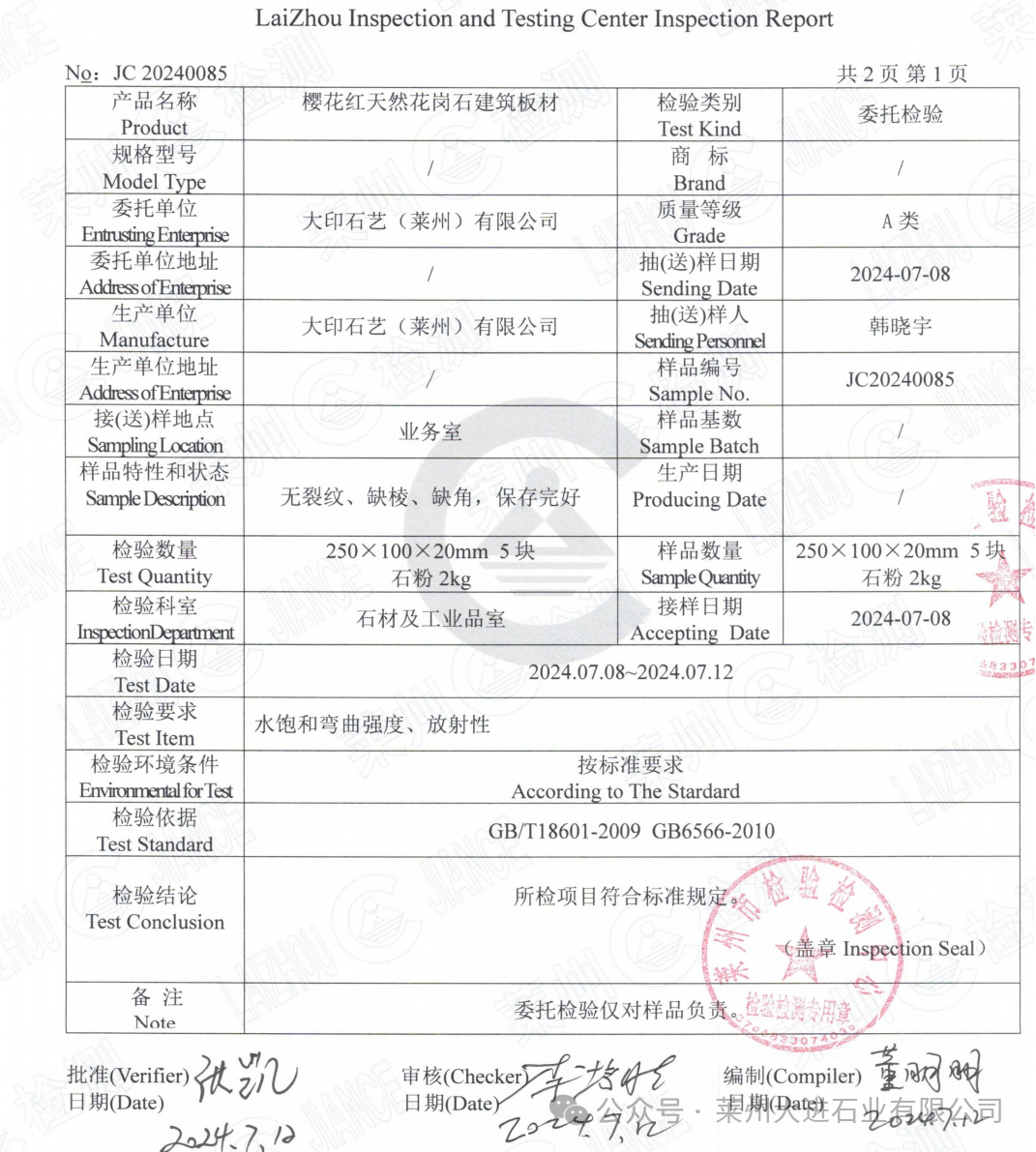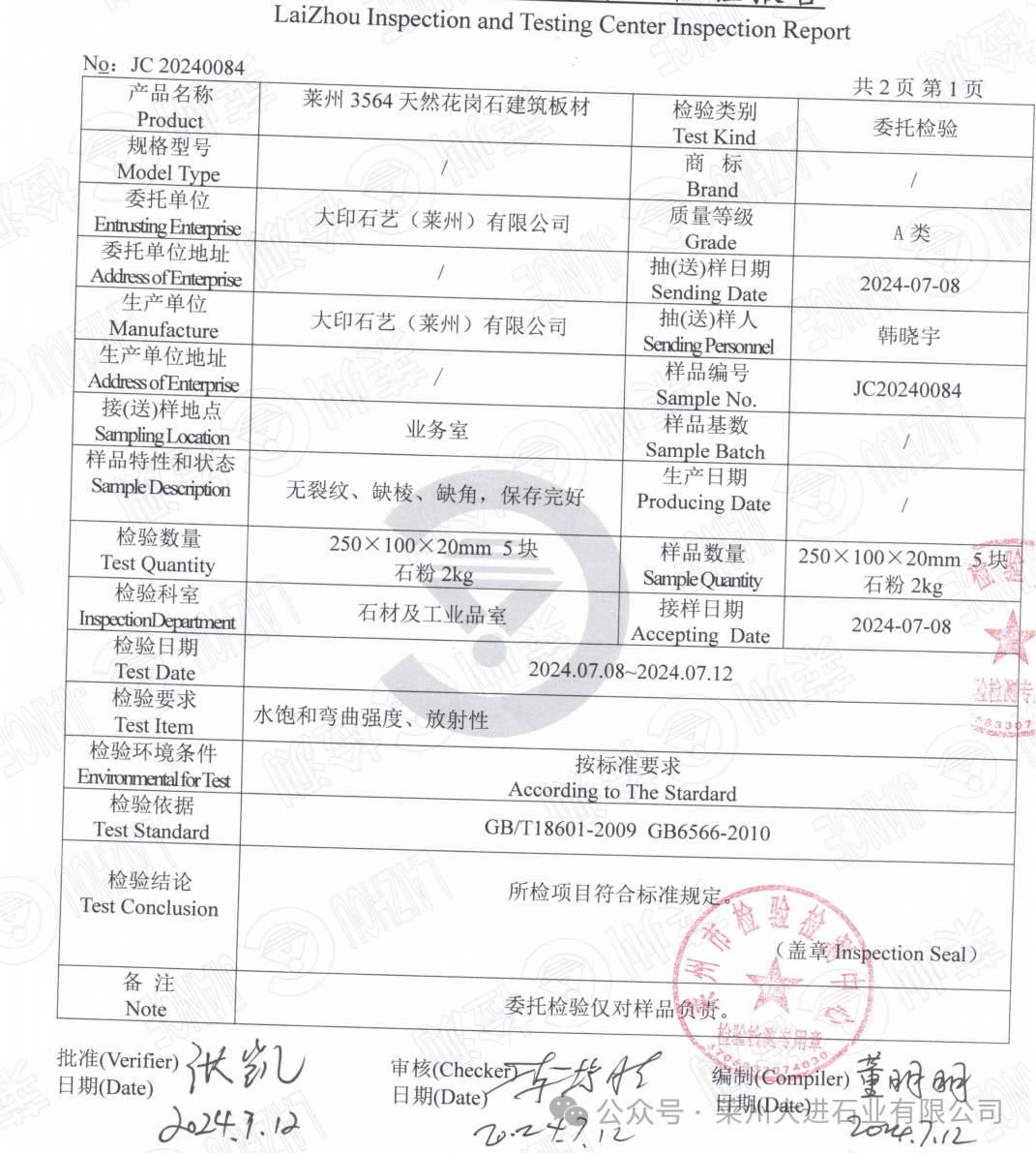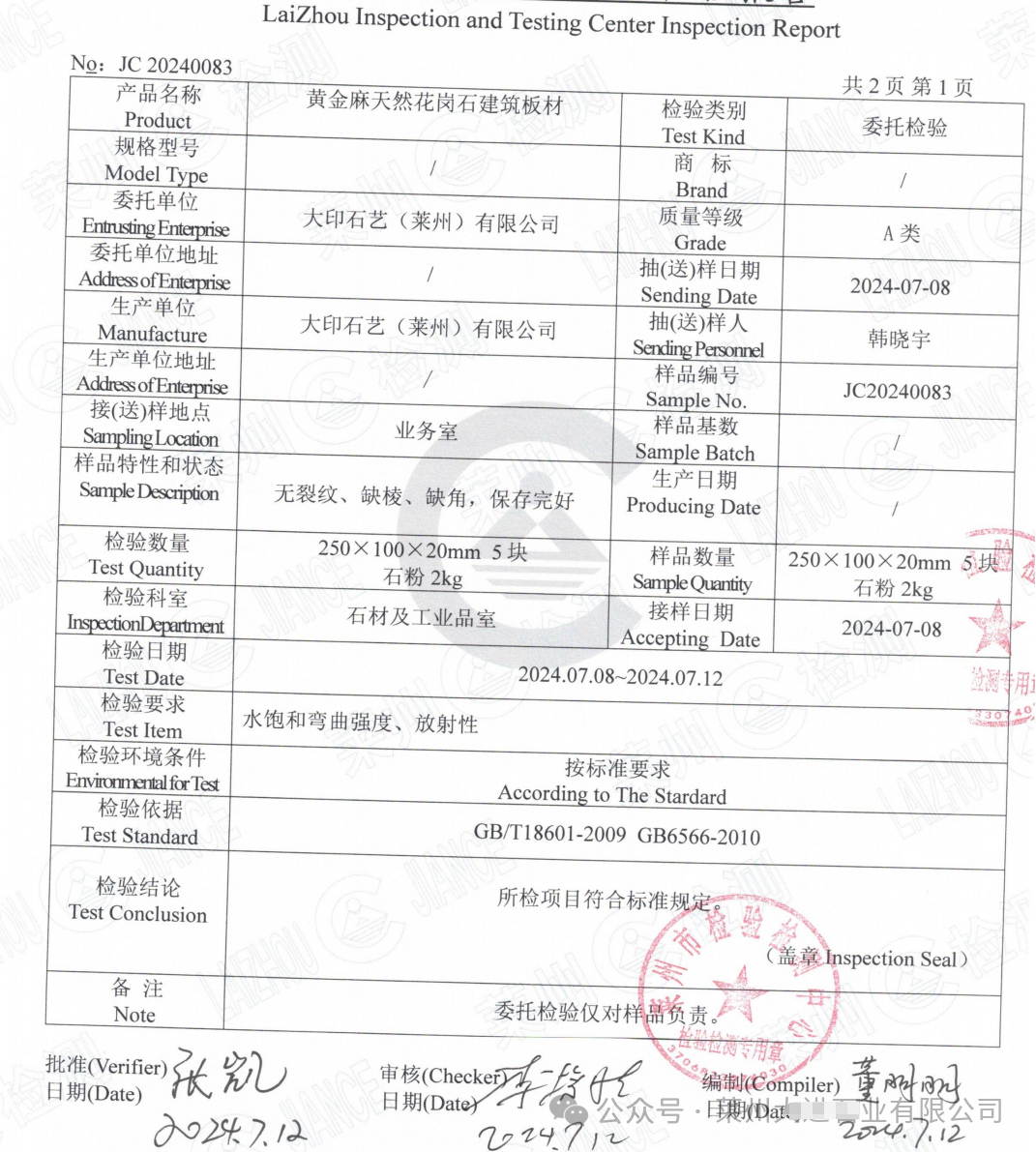 中国石都莱州四大名石:黄金麻、樱花红、G3564、晶白玉检测报告出炉