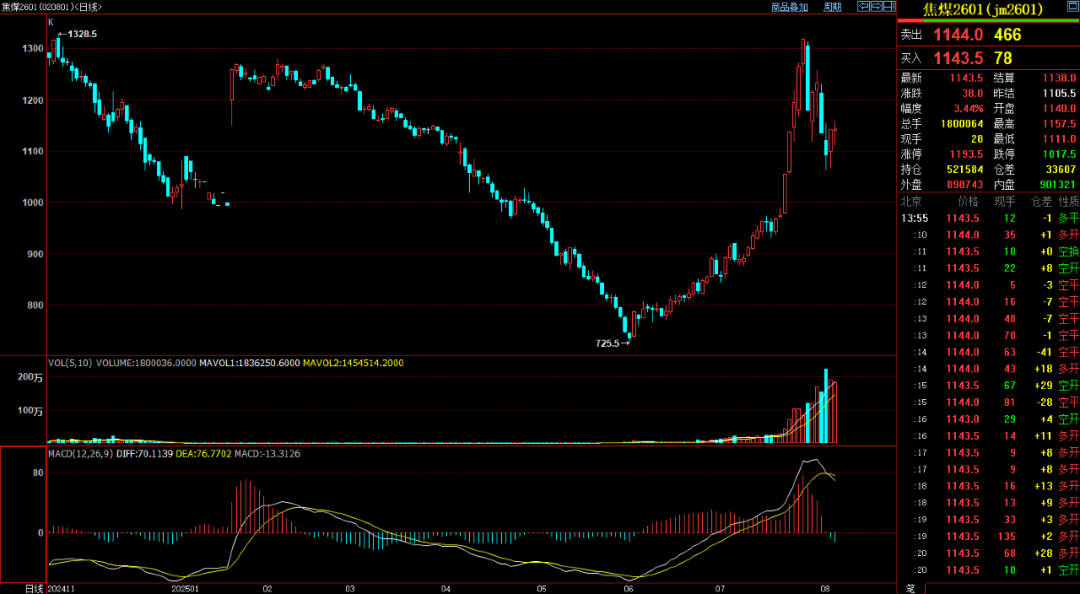 复盘可以看到上次交流时间,股市煤炭指数已经出现了一定见顶迹象,后市焦煤亦表现出跟随,虽然过程中仍然存在涨停,但是降波过程中仍然选择的是下跌调整为主。