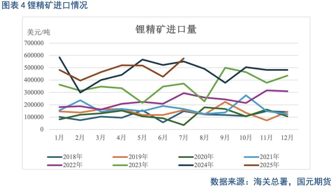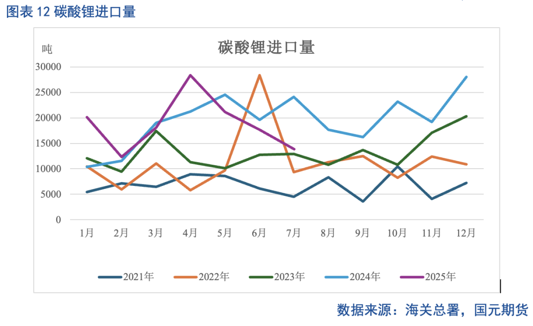 从进口量来看,由于锂价下行及主产国季节性减产影响,7月碳酸锂进口量环比减27.82%。9月国内锂盐进口或显著增加。