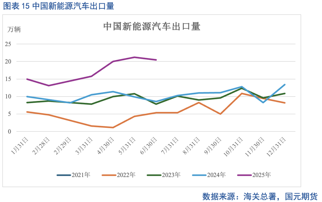 海外动力方面,年内欧盟碳排放标准推进,推动上半年欧盟插电新能源汽车销量大幅增长21.19%;此外,东南亚地区对国内新能源汽车需求增加,整体推动上半年国内新能源汽车出口实现80.2%的同比增长。