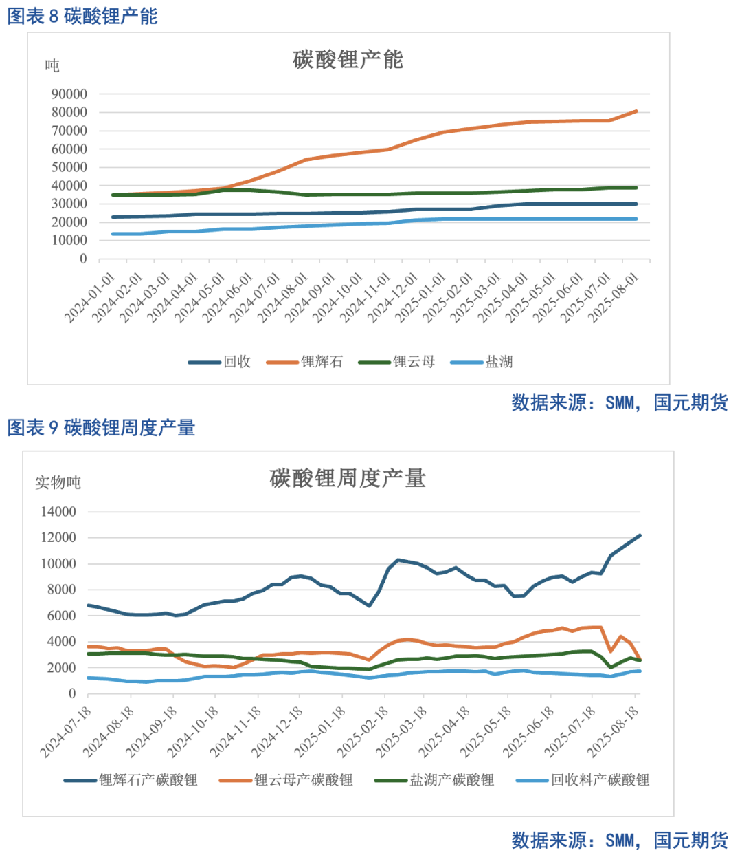 综合来看,9月国内盐湖及云母提锂方面存在一定减量,辉石提锂在海外矿山增产背景下维持增长,考虑到供应量级因素,9月国内碳酸锂产量或延续环比小幅增长。