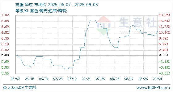 9月5日,生意社鸡蛋基准价为6.58元/公斤,与本月初(6.47元/公斤)相比,上涨了1.70%。