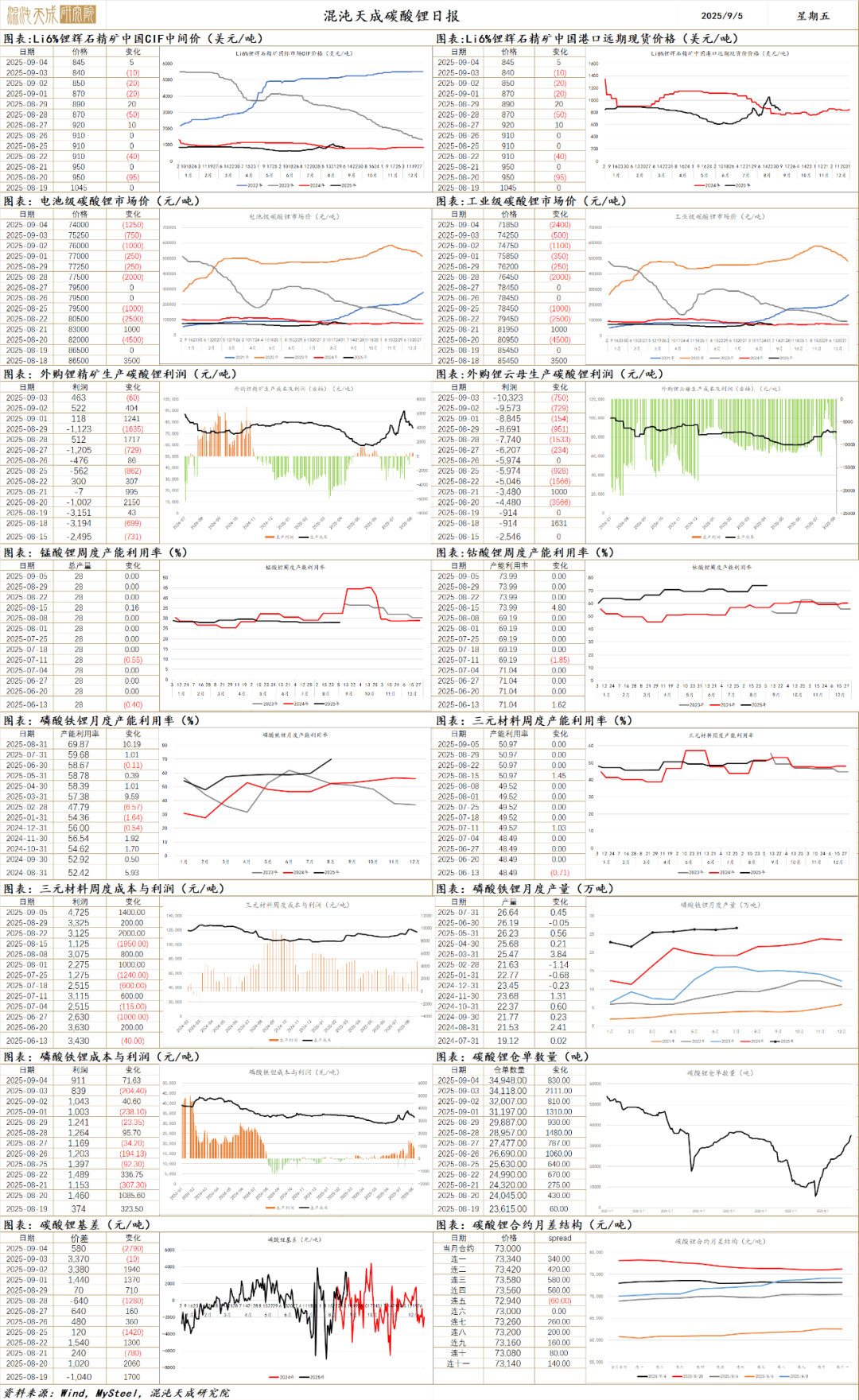 昨日碳酸锂主力合约收盘价73420元/吨,涨跌幅+1.05%。主力合约持仓+7626至353674手,仓单+830至34948吨。现货方面,电池级碳酸锂报价-1250至74000元/吨,工业级碳酸锂报价-2400至71850元/吨。锂精矿均价维持850美元/吨。