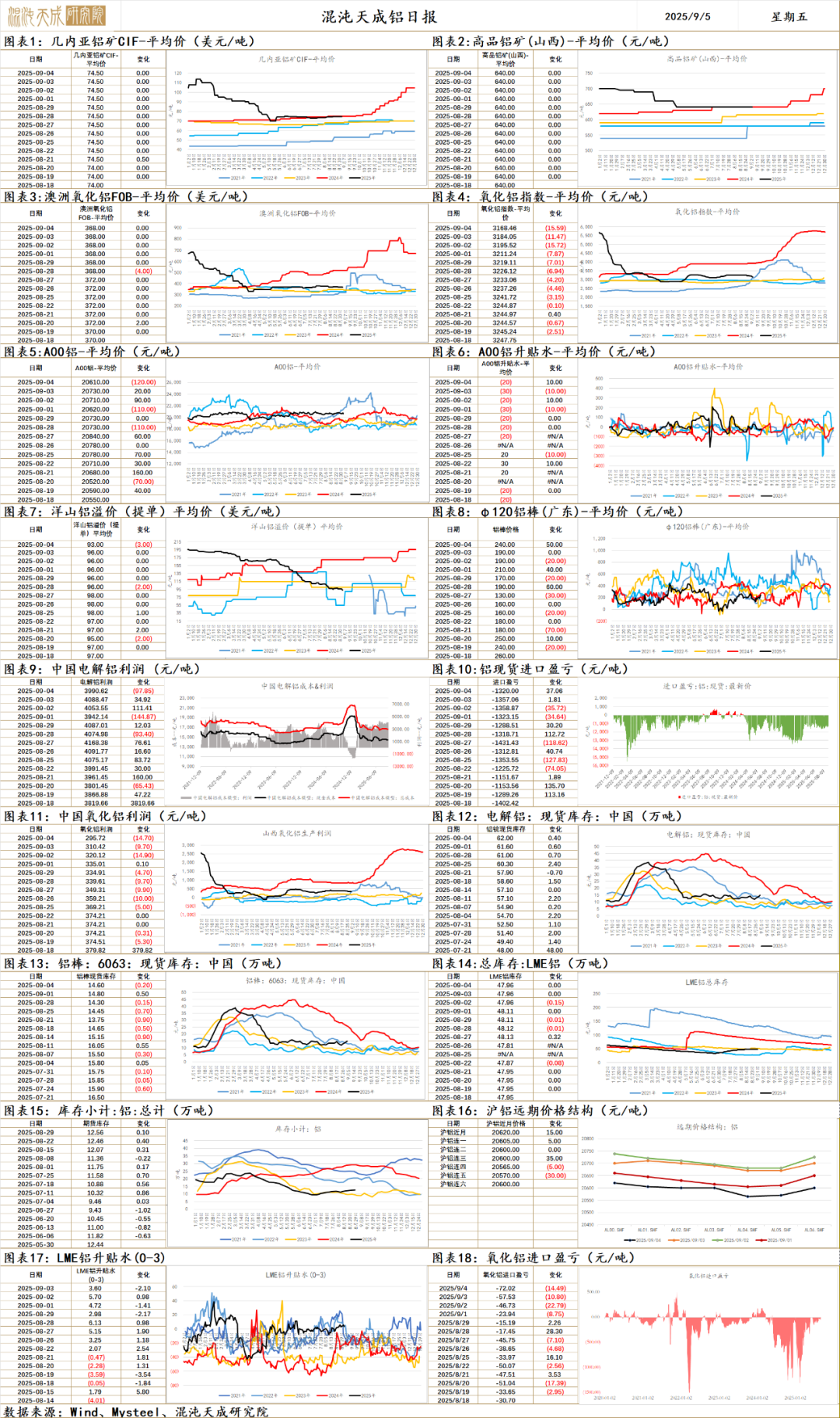 原料端,7月铝土矿进口量同比增长34.2%,叠加现今铝土矿库存高位,冶炼利润仍存,周产量持续高位,氧化铝库存持续累库,现货价格承压下行,基本面仍偏空。