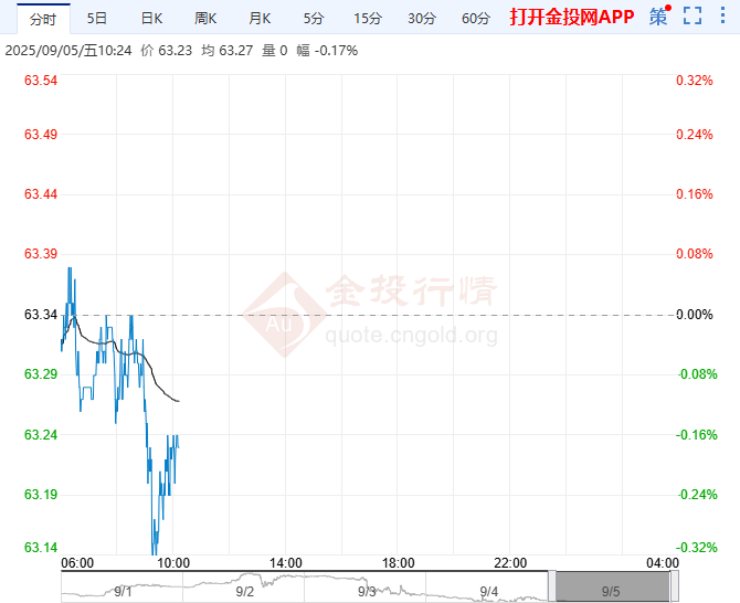截止北京时间9月5日上午10点25分,WTI原油现报63.23美元/桶,跌幅0.17%;布伦特原油现报66.74美元/桶,跌幅0.21%。