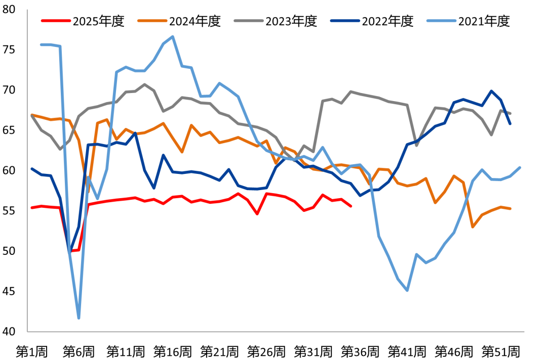 双胶纸行业产能集中度一般,2024年CR4约45%,但龙头企业一体化程度高,具有较强的市场竞争力,近年来产能投放节奏加快,行业产能呈现向头部集中趋势,主要龙头企业有太阳纸业、晨鸣纸业、华泰纸业、亚太森博、玖龙纸业等。由于下游需求增长较慢,因此在产能不断扩张的背景下,行业开工率持续下滑,2025年1-8月行业开工率基本维持在55%附近。虽然下游需求受季节性因素影响,但产量上除了春节因素外,未有明显的季节性特征。
