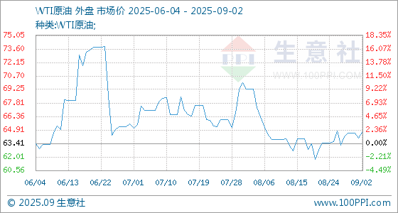 9月2日生意社WTI原油基准价为64.01美元/桶