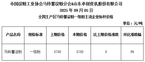 注:优级粉质量等级:白度92%,粘度1300以上,此价格采集5家国内高端马铃薯淀粉企业的出厂价格,产量占比行业生产总量的80%以上。注:价格为企业报价。